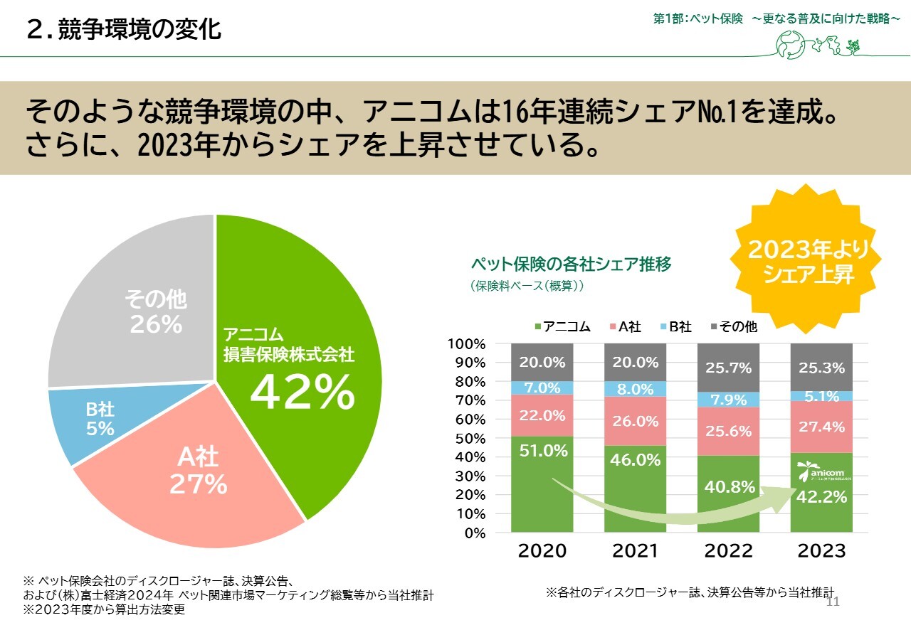 増井:「新規参入企業が増える中で、アニコムのシェアが2023年から再び上昇していますが、その要因をどのように分析されていますか?」というご質問です。