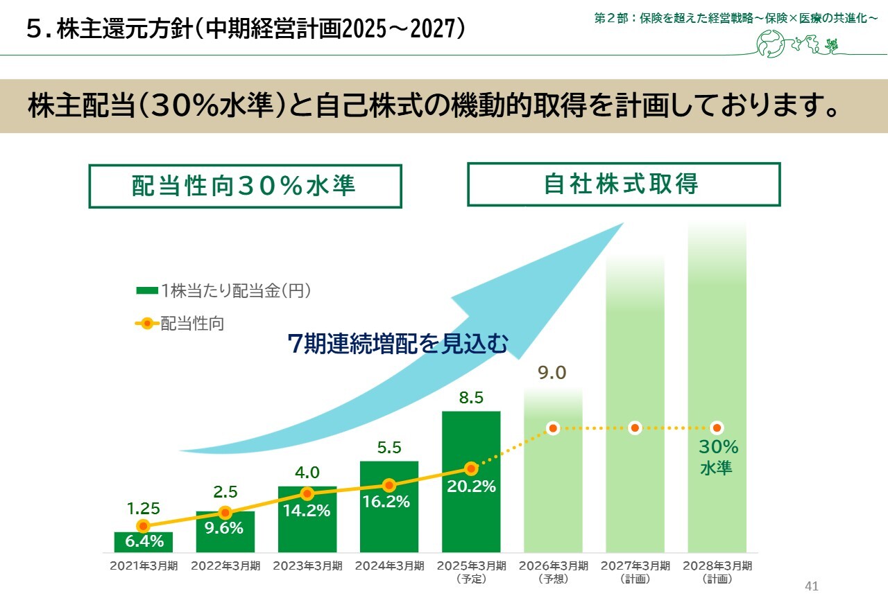 質問:今後も連続増配を予定されていますが、配当性向30パーセントは中長期的に維持するお考えでしょうか?