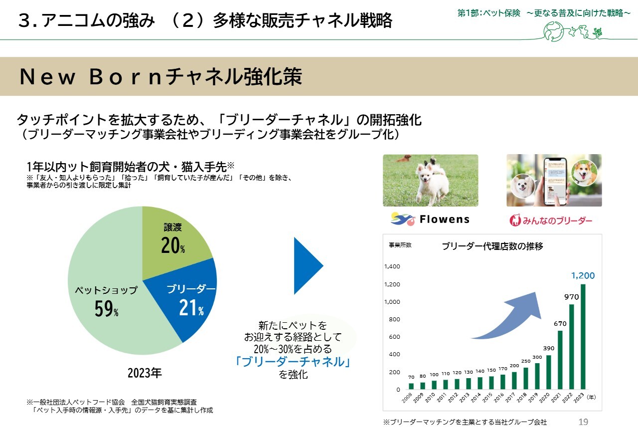 アニコムでは、日本最大のブリーダーマッチングサイトである「みんなのブリーダー」をグループ化しました。このようなかたちで、ブリーダーチャネルの拡大も進めているところです。