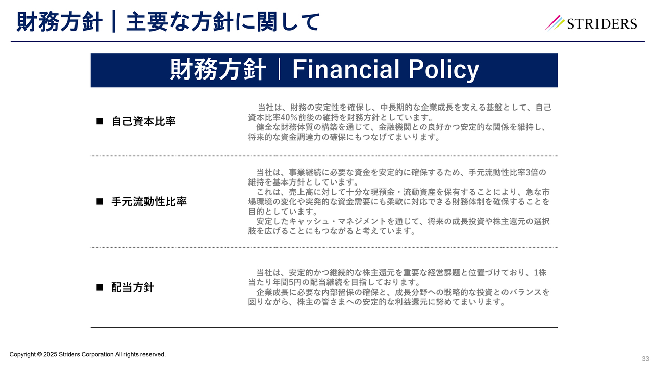 今後の方針については、収益基盤を着実に拡大し、再現性を持って維持していくことがとても重要だと考えています。また、企業価値を向上することが非常に大事だと認識しています。