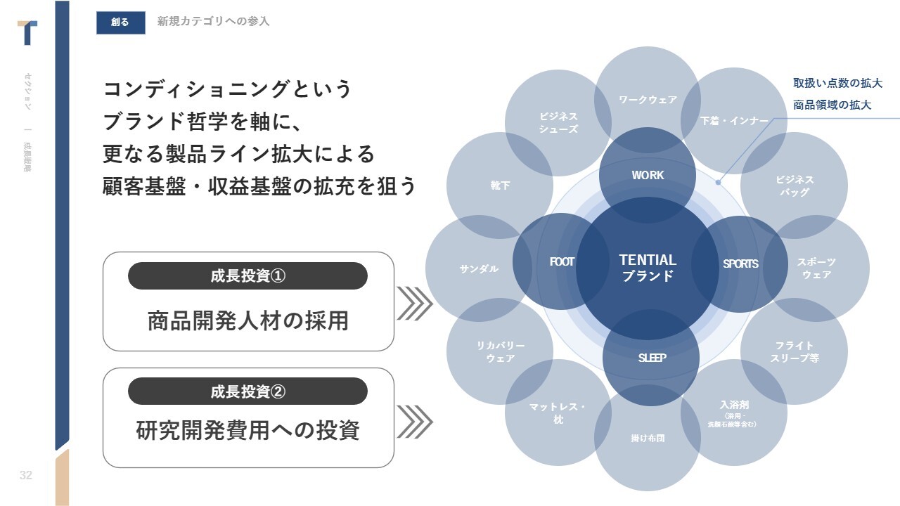 それらの商品開発の体制として、商品開発人材の採用や研究開発費用への投資を積極的に行っています。