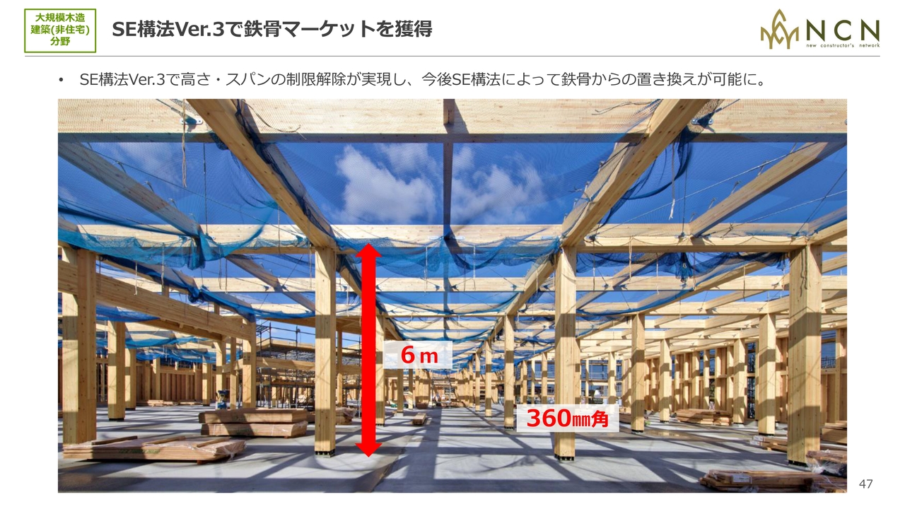大規模木造建築(非住宅)分野 SE構法Ver.3で鉄骨マーケットを獲得