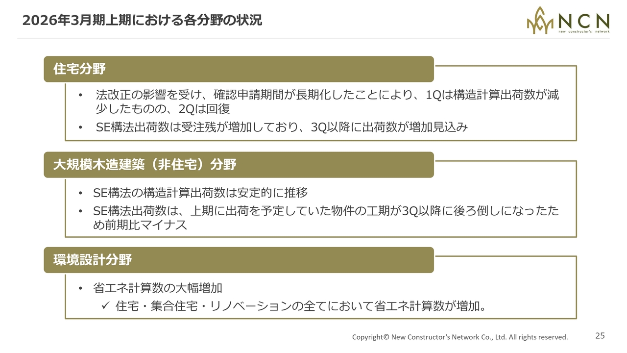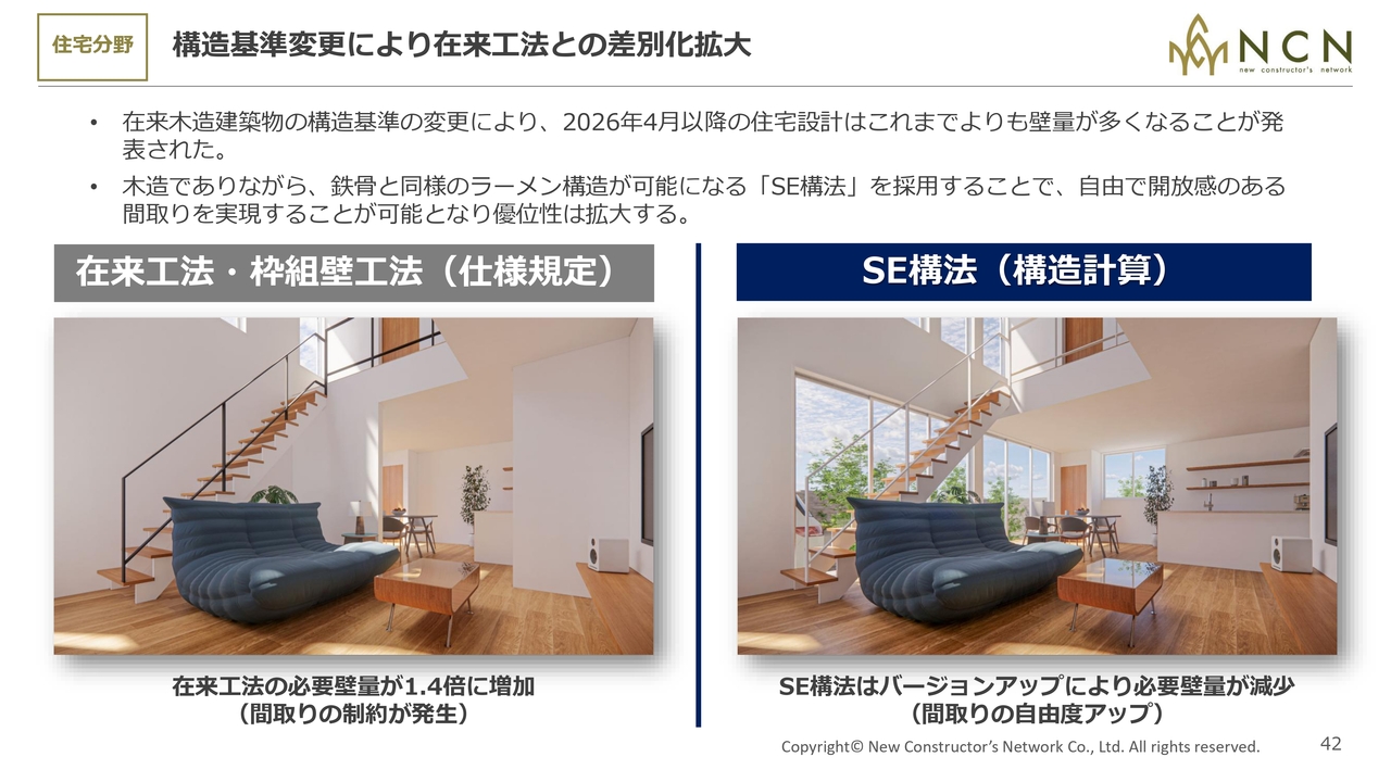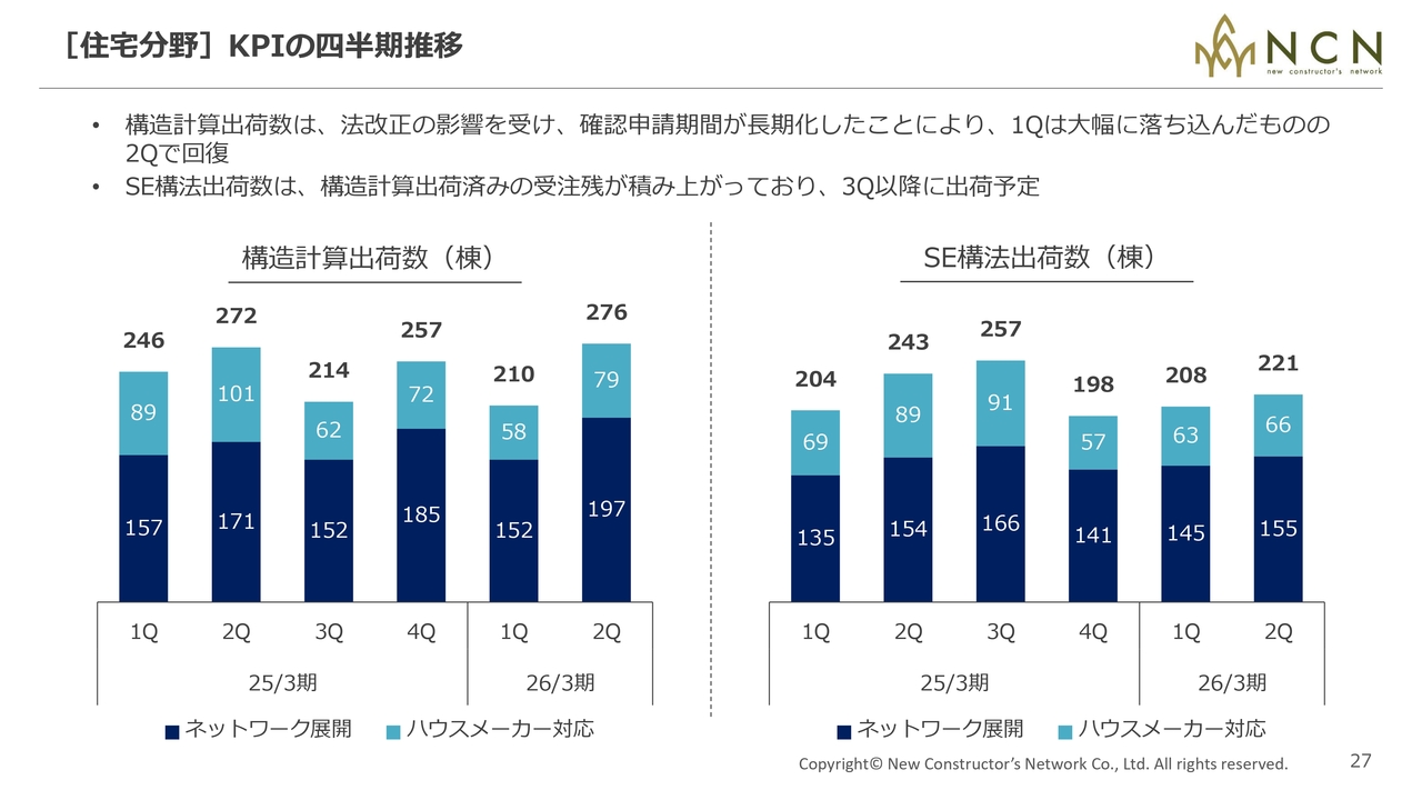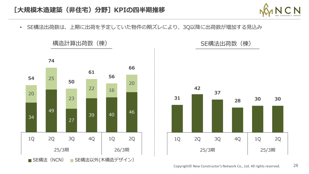 【QAあり】エヌ・シー・エヌ、確認申請期間長期化で構造計算出荷数が減少も2Qで回復 法改正を追い風にSE構法の拡大を狙う