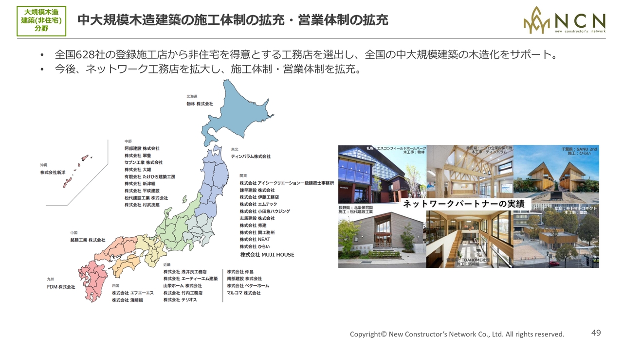 田鎖:施工体制と受注体制です。現在、ネットワークパートナーは36社ですが、さらに我々のノウハウを蓄積し、大規模な建築の施工ができる工務店にも入っていただきながら、このネットワークを拡充し、営業体制を強化していきます。