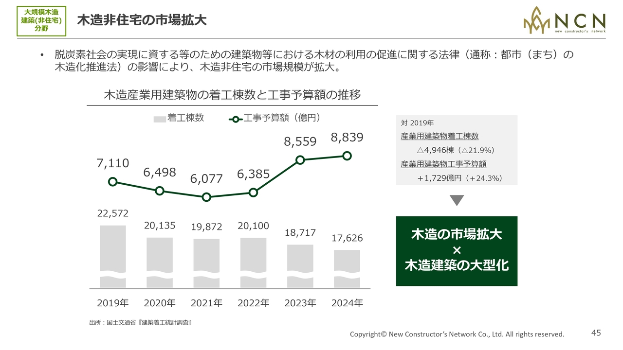 大規模木造建築(非住宅)分野では新しい取り組みを始めました。後ほどご説明します。