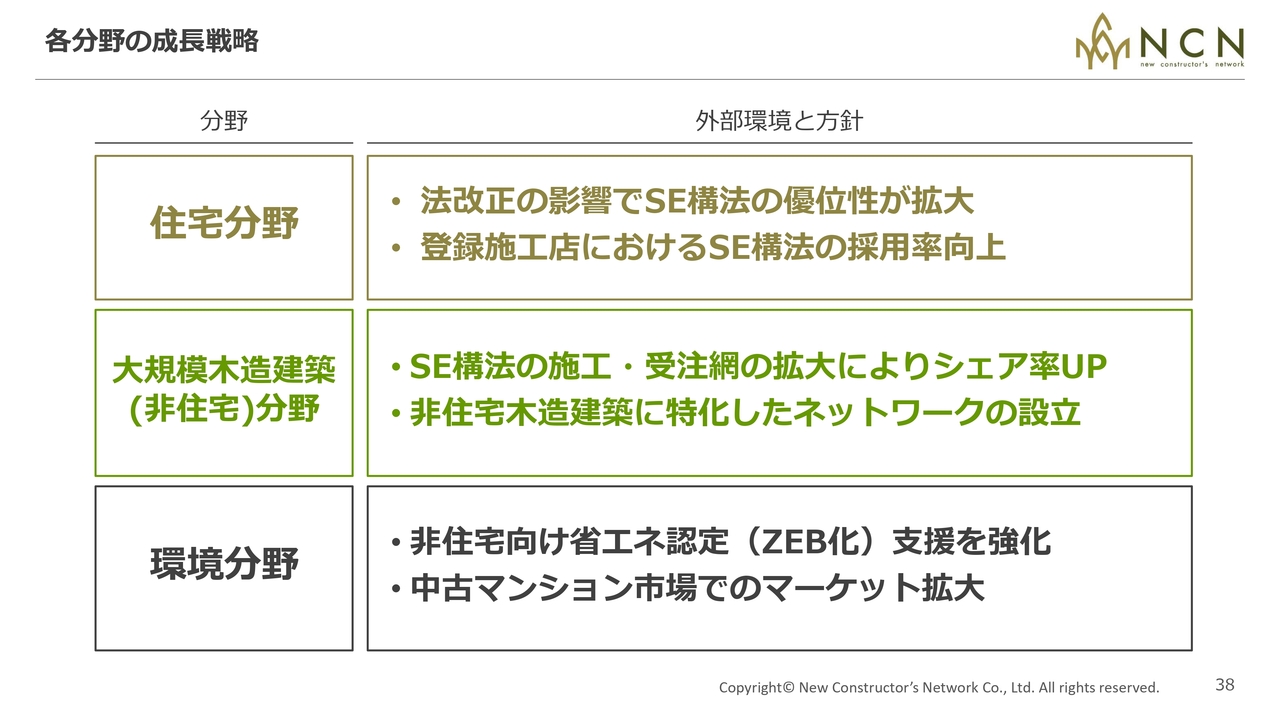 この3点において、工務店やハウスメーカーをサポートしながら、我々も成長するという戦略です。
