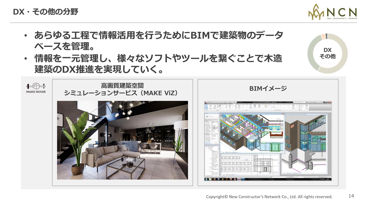 田鎖:DX・その他の分野です。アメリカやヨーロッパなどでは、建築図面としてデジタルデータであるBIMを用います。当社ではそれをそのまま日本に輸入して、木造建築でBIMを使っています。