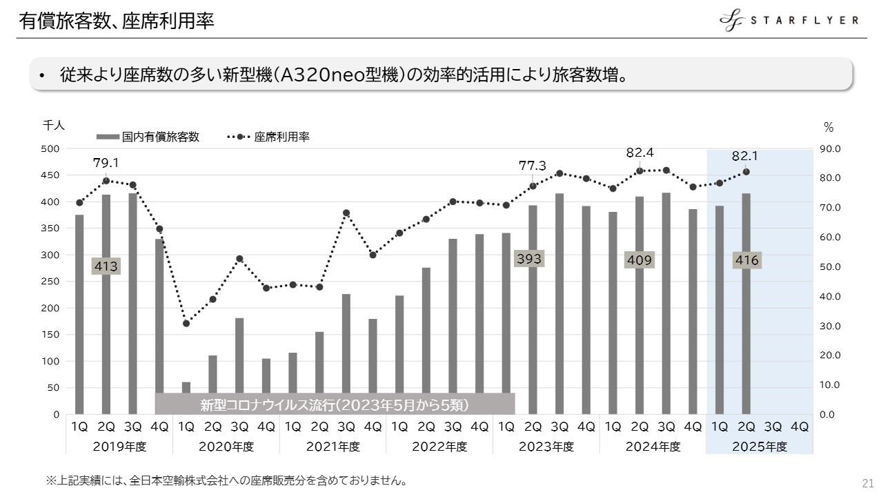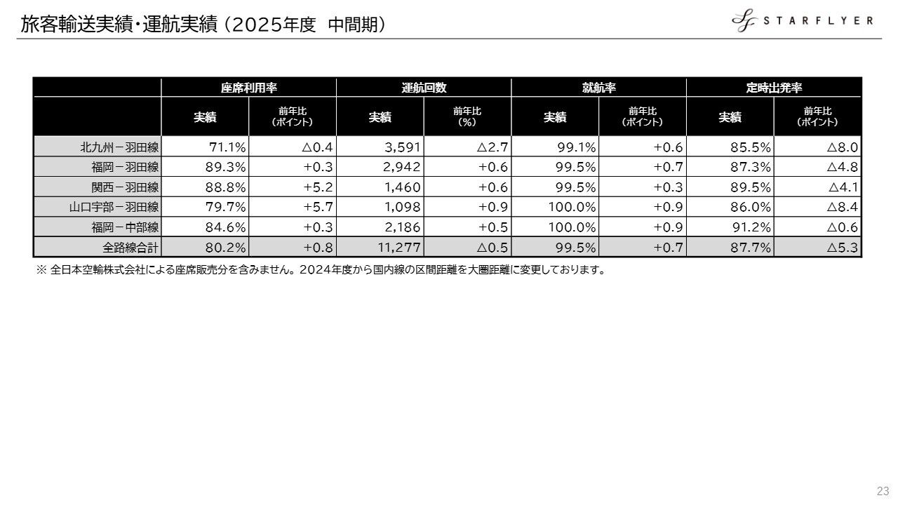 町田:中間期の振り返りと下期の対応についてです。過去最高の営業収入を達成したと先ほどご説明しましたが、新型機であるneo型機を導入したことで、提供座席数が150席から162席に増えました。その部分でお客さまの増加、収益の取り込みが着実にできています。