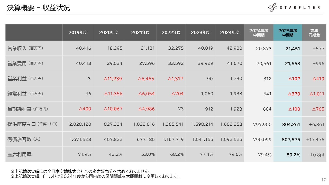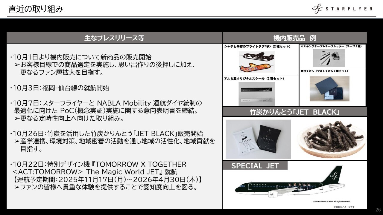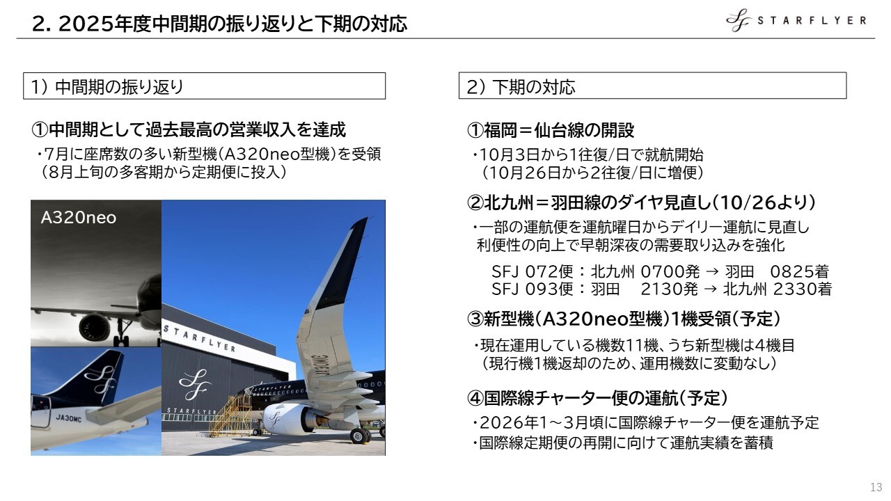 【QAあり】スターフライヤー、福岡-仙台線が好調スタート 需要堅調を踏まえ通期計画据え置き、純利益17.6億円を維持