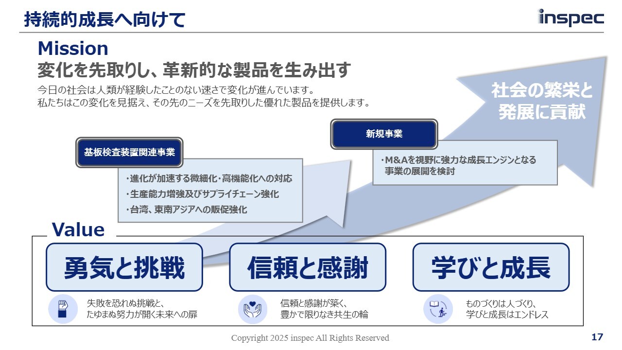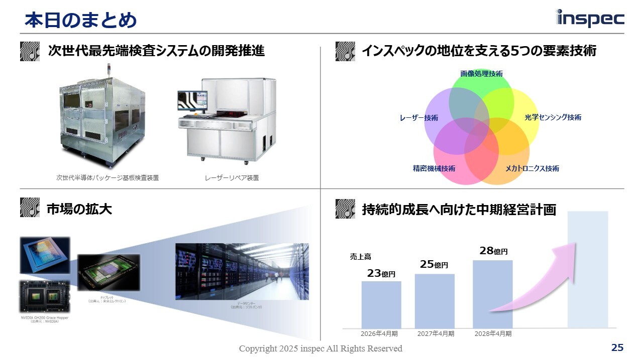 菅原:最後に本日のまとめです。最先端の検査装置を開発する社内の技術力、そして現在大きな波が来ているAIデータセンター向けの半導体パッケージ基板の市場をしっかりとつかんでいきます。