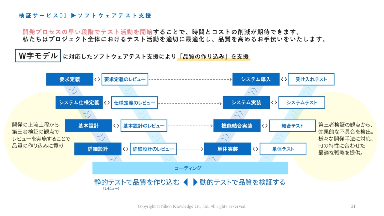 藤井:次に、検証サービスについてご説明します。従来行っているソフトウェアの品質向上を目的としたテスト、自動化、プロセス改善を支援する業務になります。