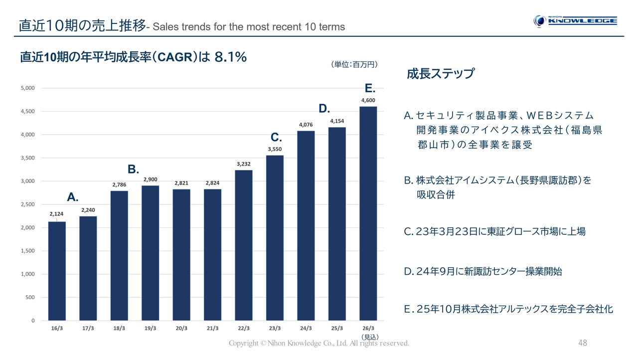 ただし、今後については、企業をさらに強化するために、さまざまな企業との包括的な協業を検討していく必要があると考えています。創業から約40年が経過し、中小企業から上場企業へと成長した中で、上場企業としての考え方やルールを成熟させるための時間的余裕があまりありません。