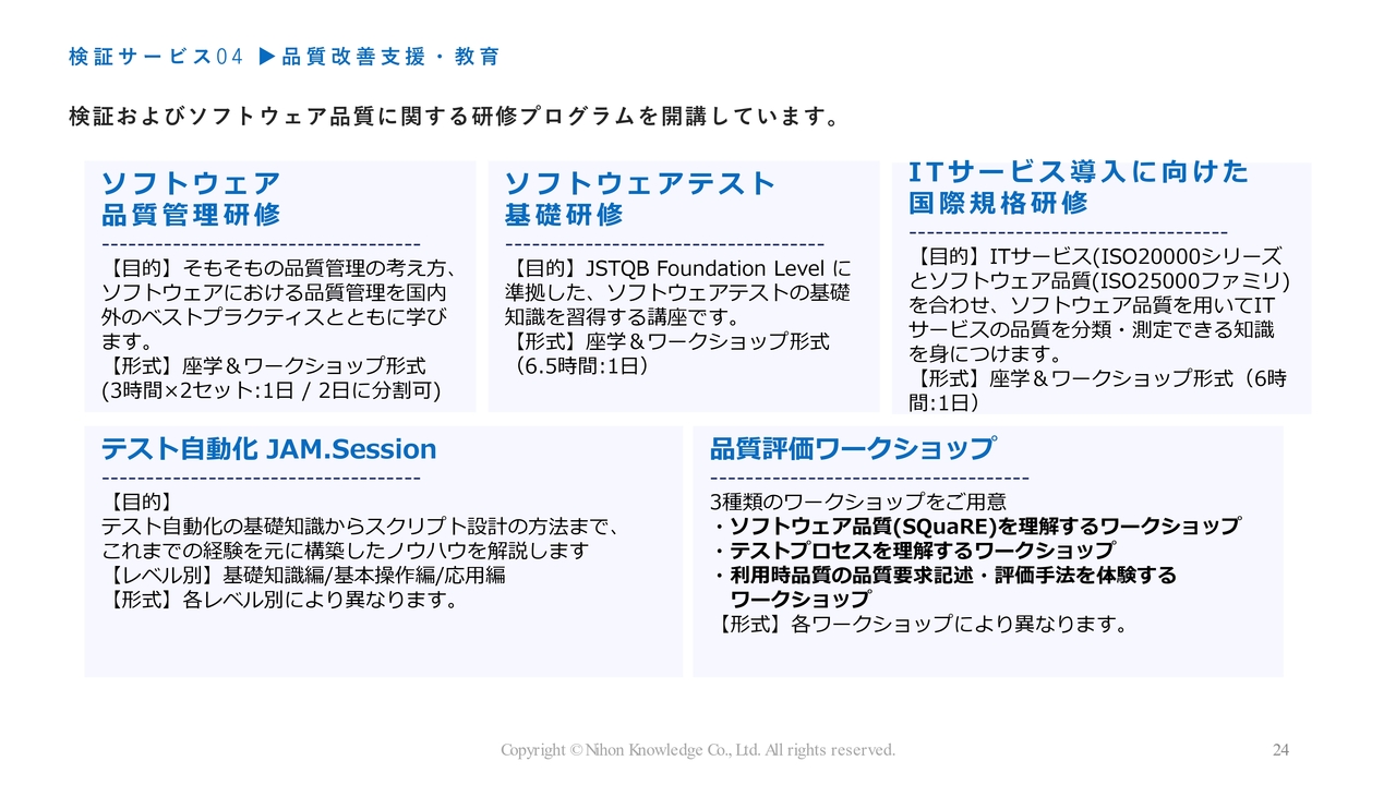 藤井:こうした取り組みを普及させるために、教育にも力を入れています。具体的には、品質管理研修や基礎研修、ワークショップなどを実施しています。詳細についてはホームページでもご案内していますので、興味のある方はぜひご覧いただければと思います。