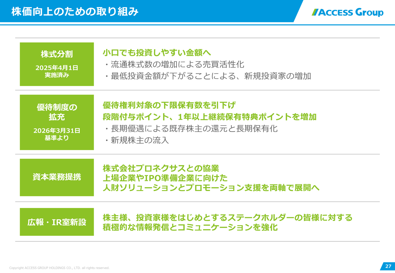 私たちはAIを中心とした企業ではありませんので、AI関連の商材の提供は次のテーマになるかと思います。しかし、現在進めているAI導入を通じて、リアルなマッチングの精度をさらに向上させる取り組みを加速させていきたいと思います。