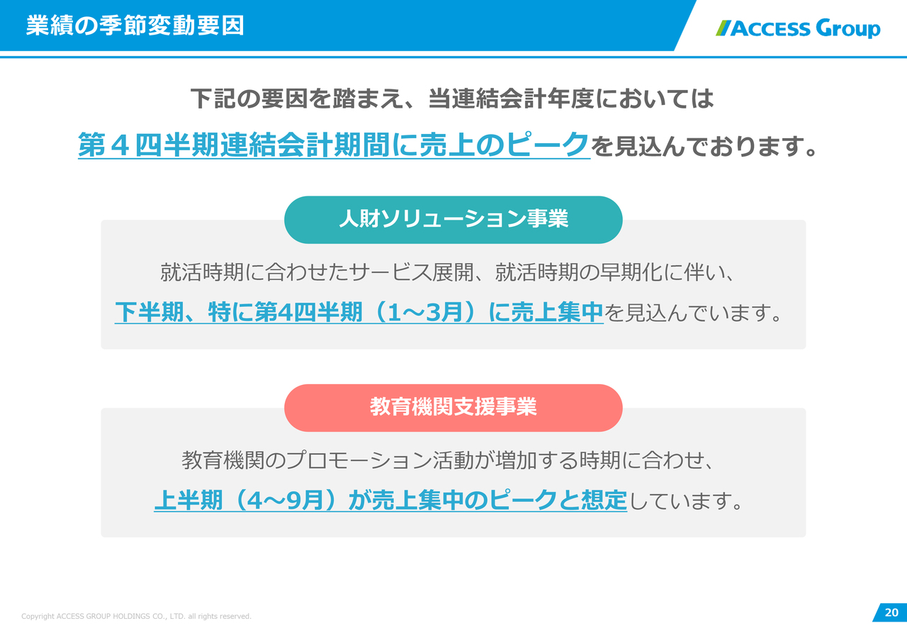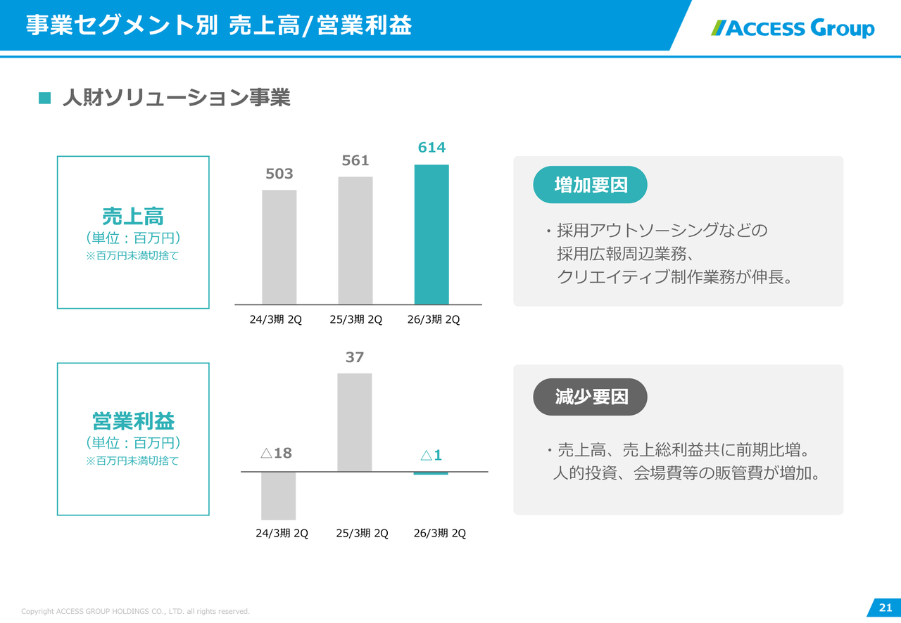営業利益については、現在人員投資を進めているため、一時的にわずかながら営業損失が出ていますが、通期の業績予想は変更せずに展開していきます。