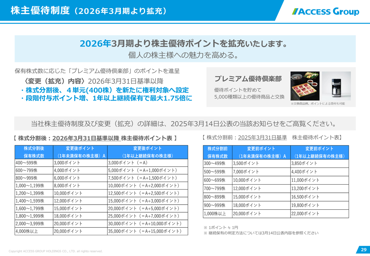 株主優待制度の拡充も進めています。私たちは配当に加えて、株主優待として「プレミアム優待倶楽部」を導入しています。この仕組みを通じて、みなさまへの物品還元を拡充しています。