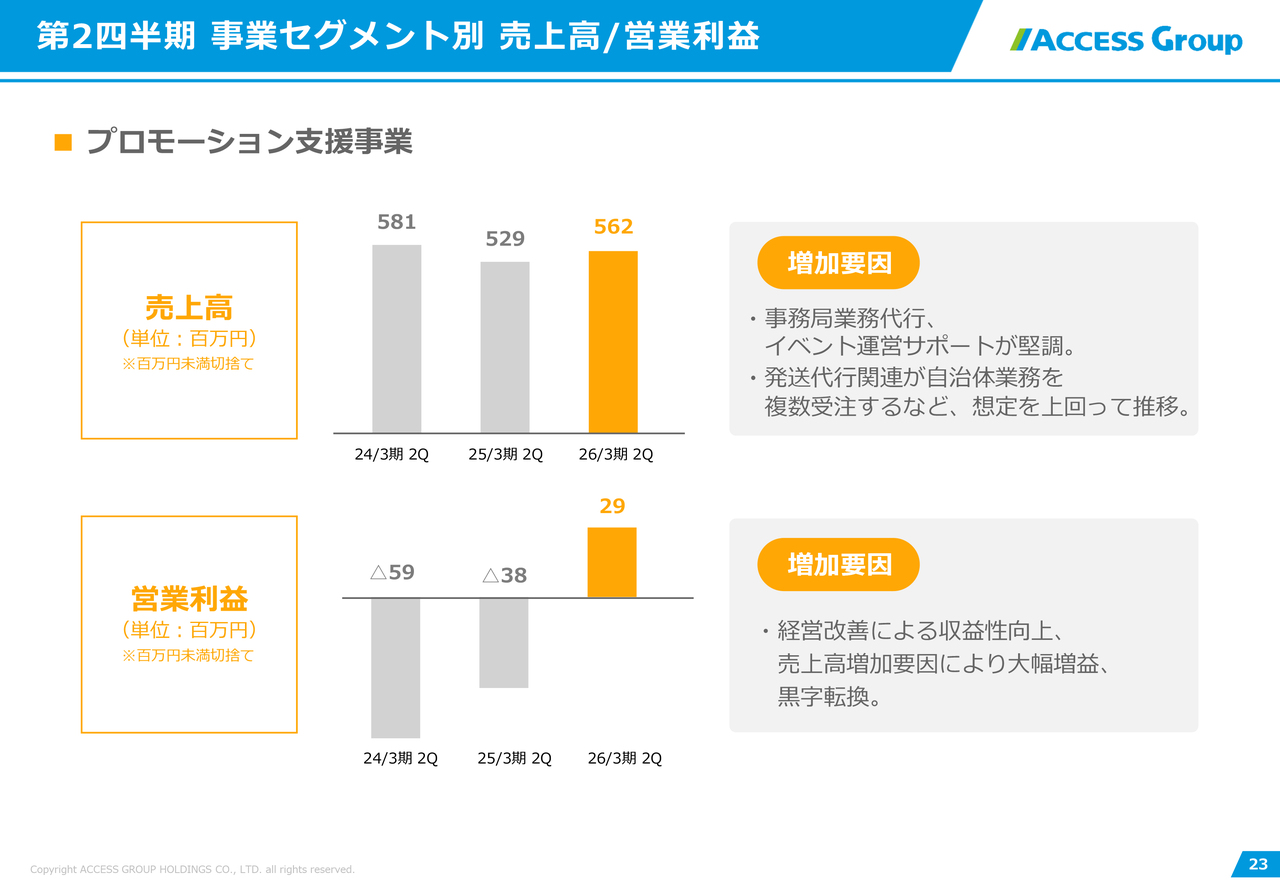 木村:プロモーション支援事業については、収益化や経営改善により営業利益が改善し、黒字転換を果たしました。引き続き、BPOのニーズを中心に対応しながら進めていきたいと思います。