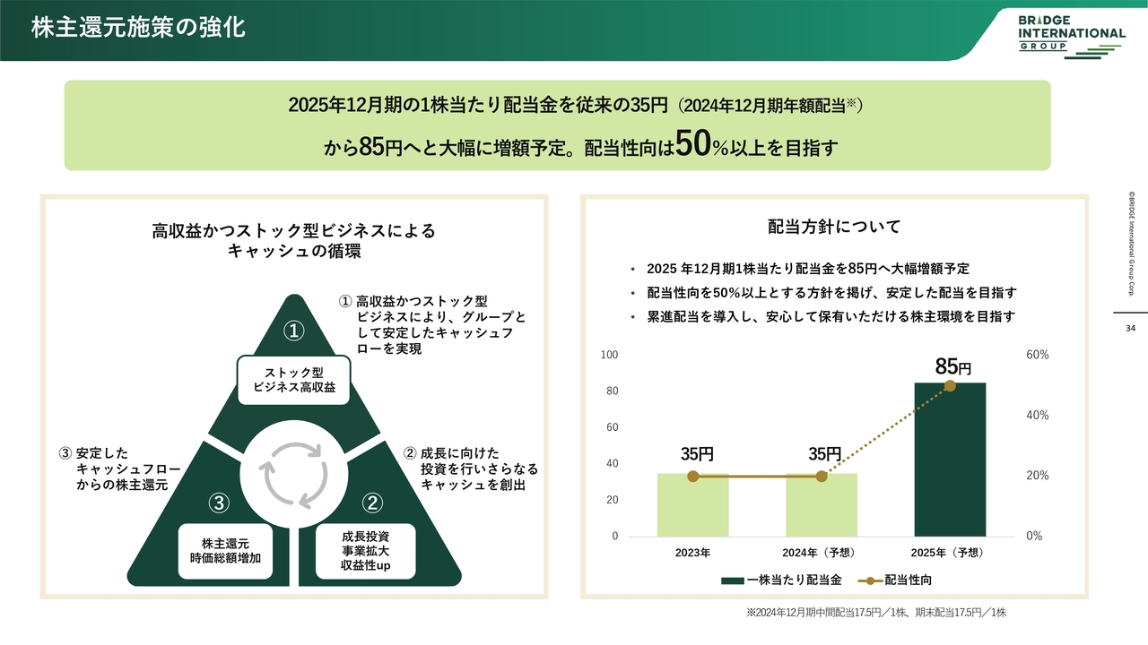 吉田:2025年12月期の配当金(予想)85円に必要な配当原資は約3億500万円であり、当社が掲げる配当性向50パーセントに照らしても、今回修正した当期純利益の範囲に十分収まる見込みです。そのため、配当金予想の見直しは行いません。