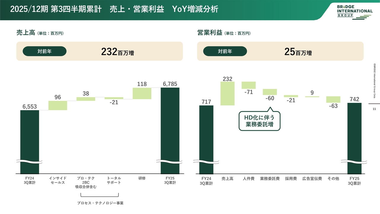 2025/12期 第3四半期累計 売上・営業利益 YoY増減分析