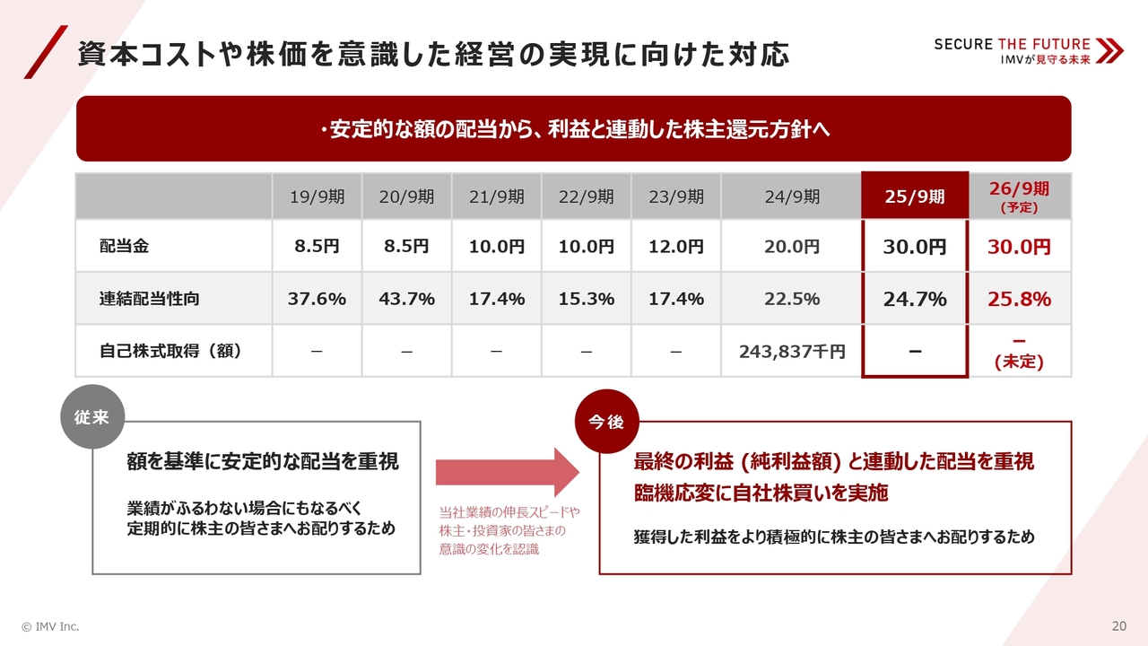 柿原正治氏:IMV株式会社取締役、経営企画本部長の柿原です。本日はお忙しい中、弊社決算説明会にお集まりいただき、誠にありがとうございます。また、日頃より弊社の事業に多大なるご理解とご支援を賜り、深く感謝申し上げます。