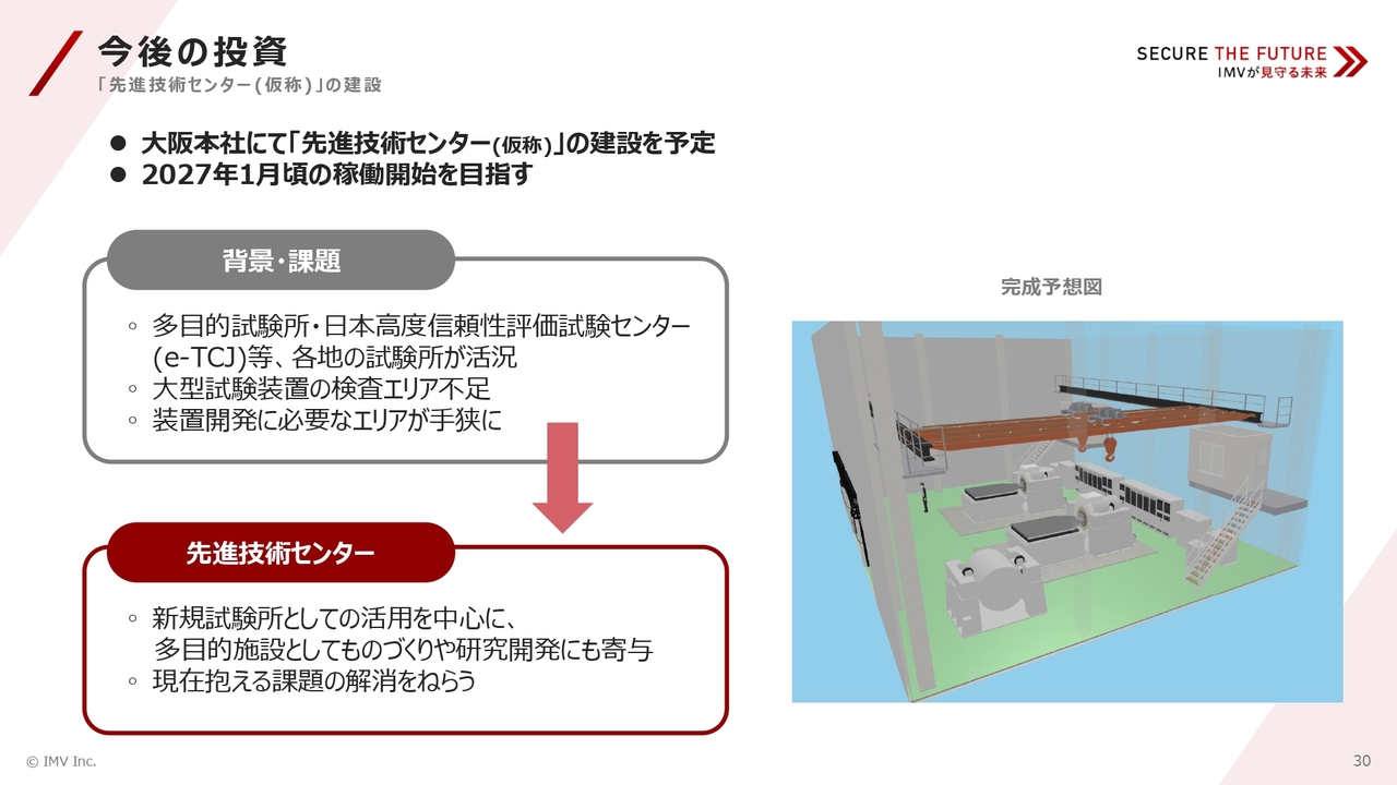 大型装置の生産、および特殊な試験に対応できるエリアの拡大を計画しています。完成は2026年9月期以降を予定していますが、このエリアの増床により、生産、テスト、実験といった用途にフレキシブルに活用できることが期待されています。
