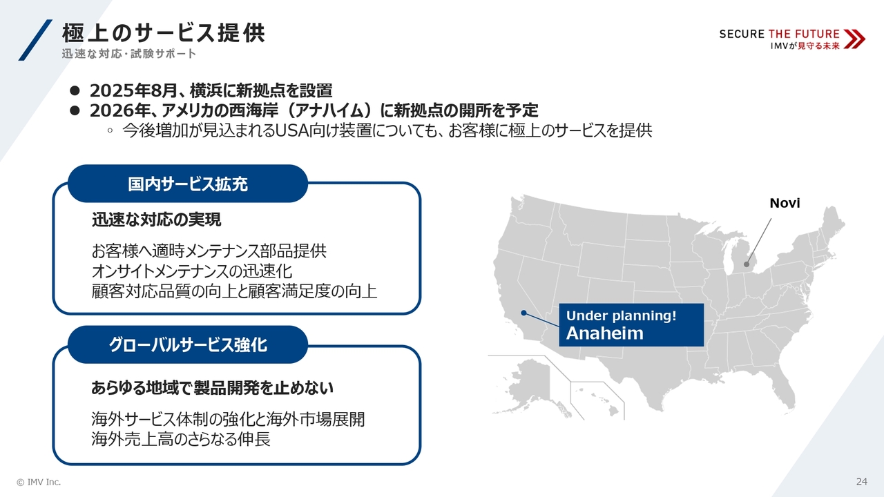 しかし、最近は航空宇宙関連のお客さまが増加しており、よりお客さまに近い場所で迅速なサービスを提供できる体制を整えるため、2026年の早い段階で西海岸に新たな拠点を開設する予定です。
