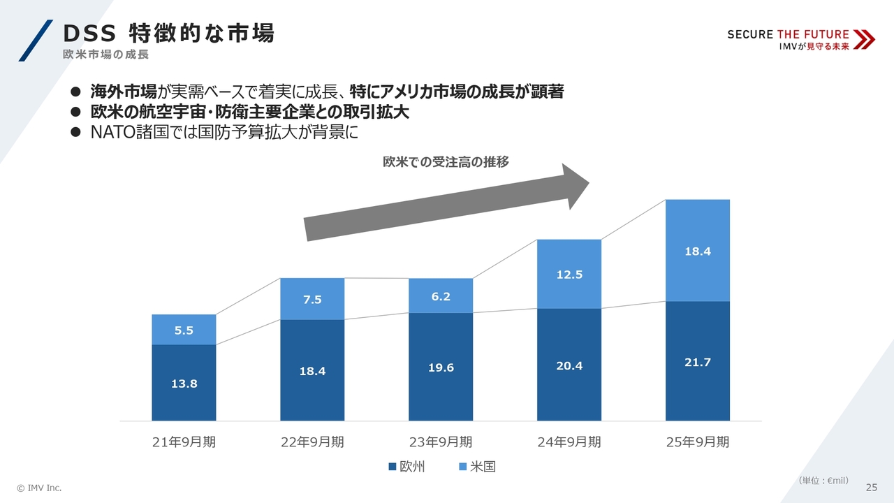 中でも、米国市場の伸びが顕著に増えていることがおわかりいただけるかと思います。この背景には、欧米の航空宇宙・防衛主要企業との取引拡大が挙げられます。