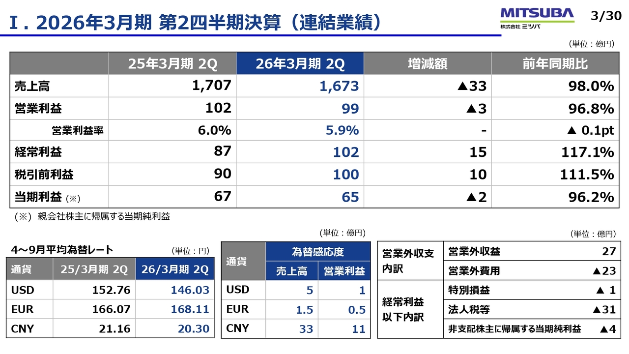 I. 2026年3月期 第2四半期決算(セグメント別業績)