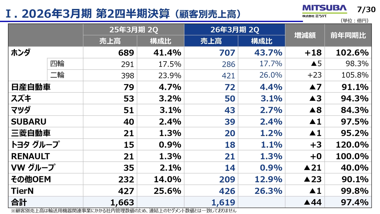 I. 2026年3月期 第2四半期決算 (顧客別売上高)