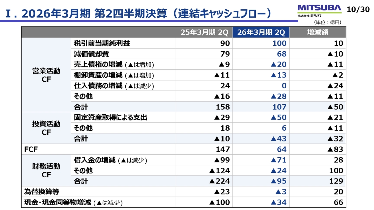 I. 2026年3月期 第2四半期決算(連結キャッシュフロー)