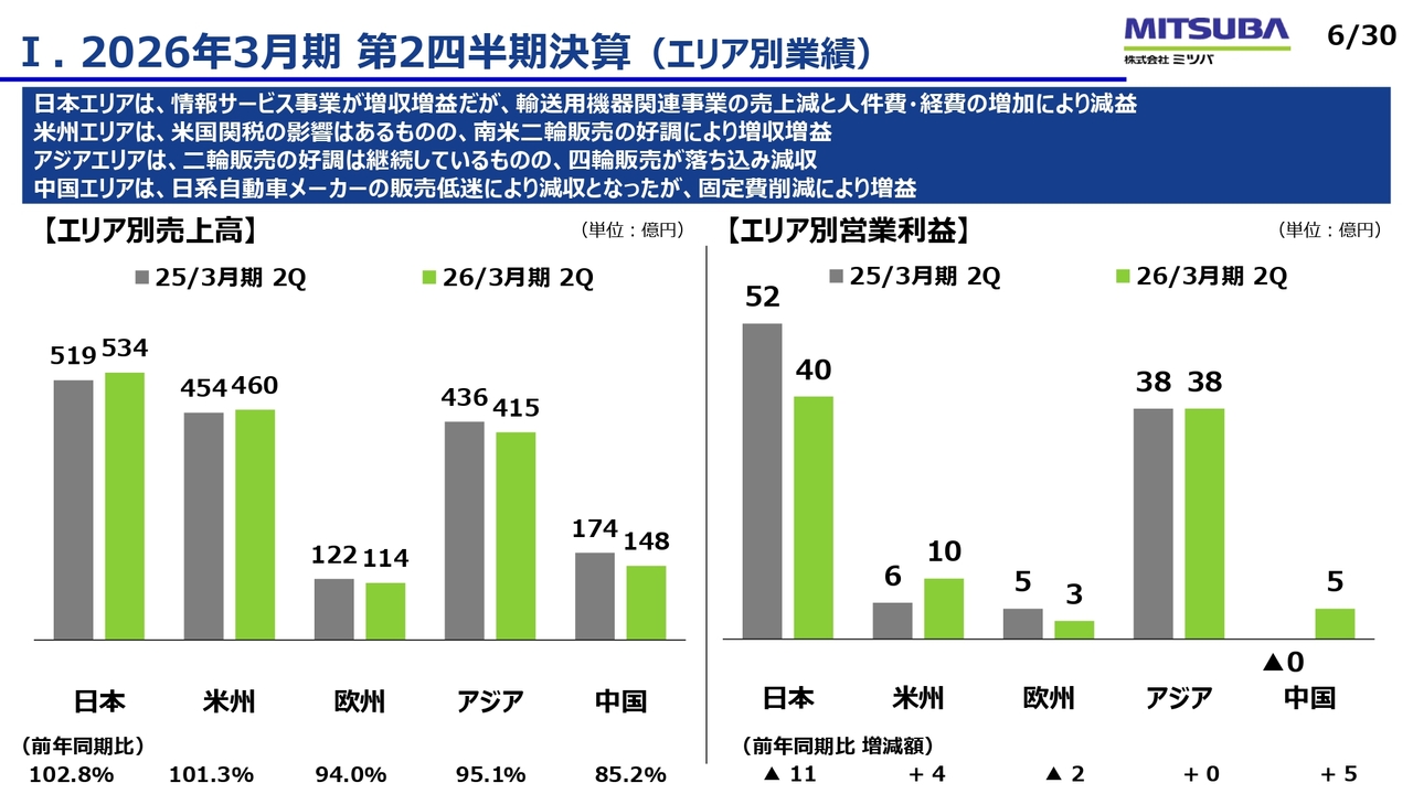 I. 2026年3月期 第2四半期決算 (エリア別業績)