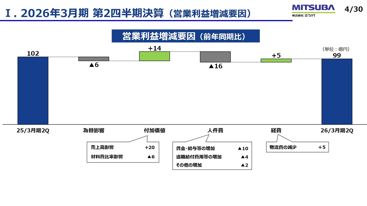 I. 2026年3月期 第2四半期決算 (営業利益増減要因)
