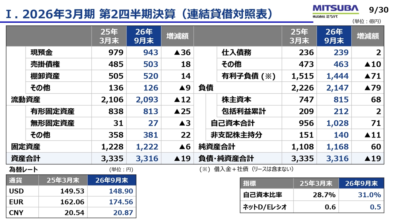I. 2026年3月期第2四半期決算(連結貸借対照表)