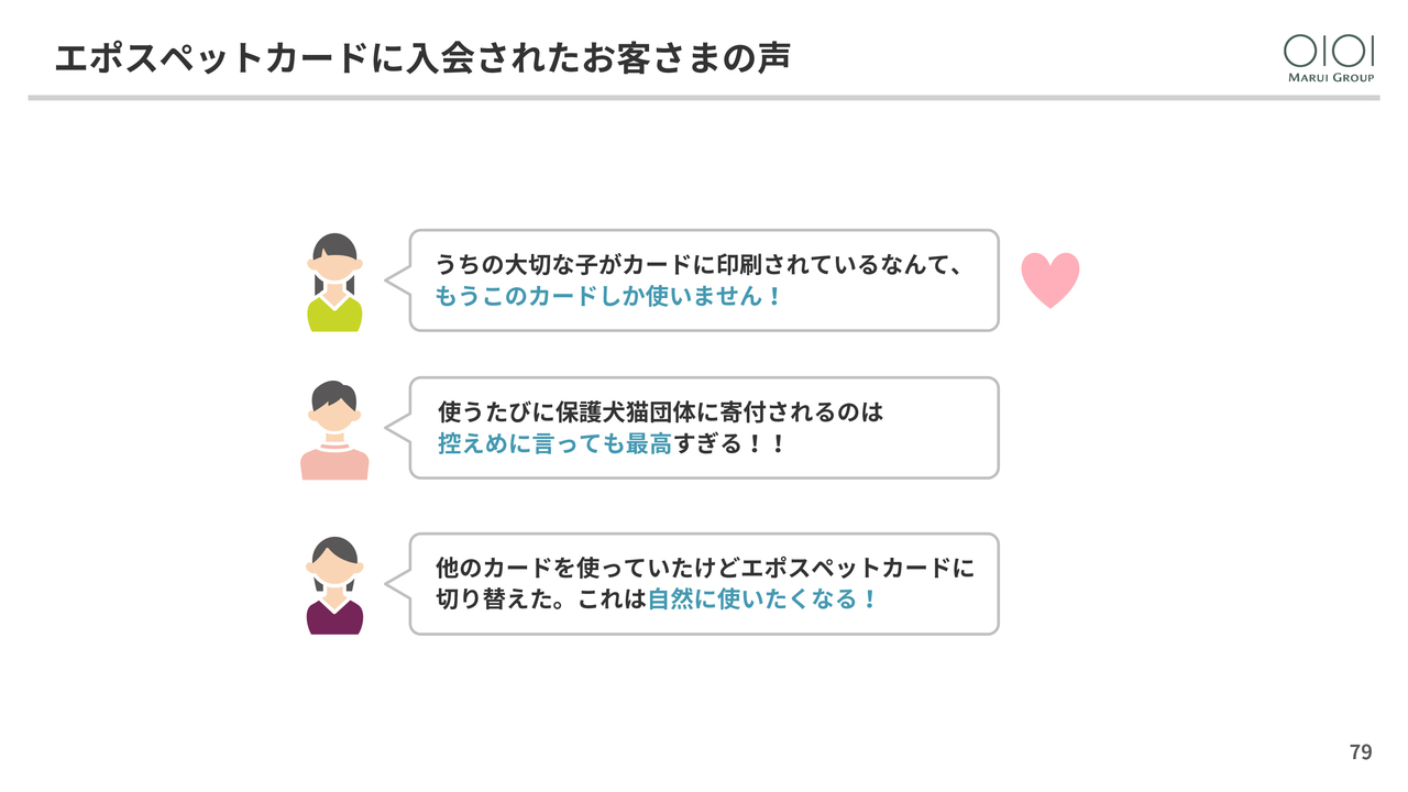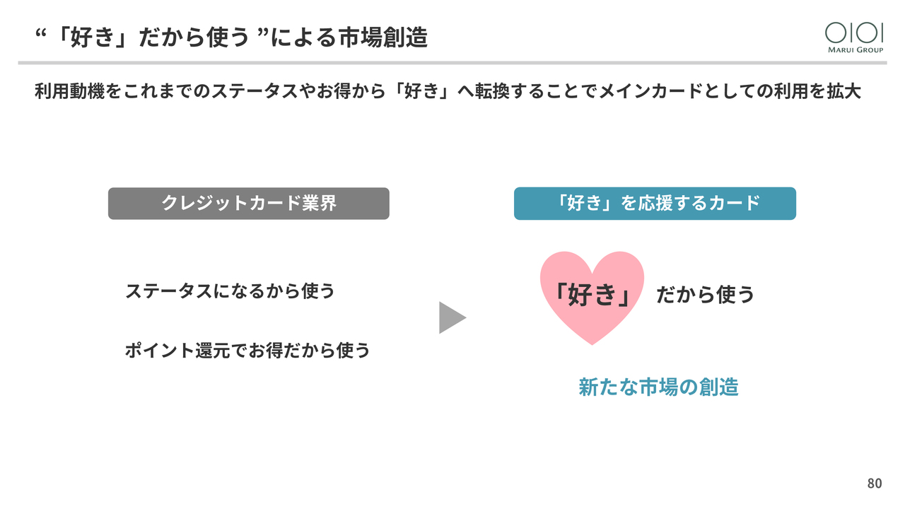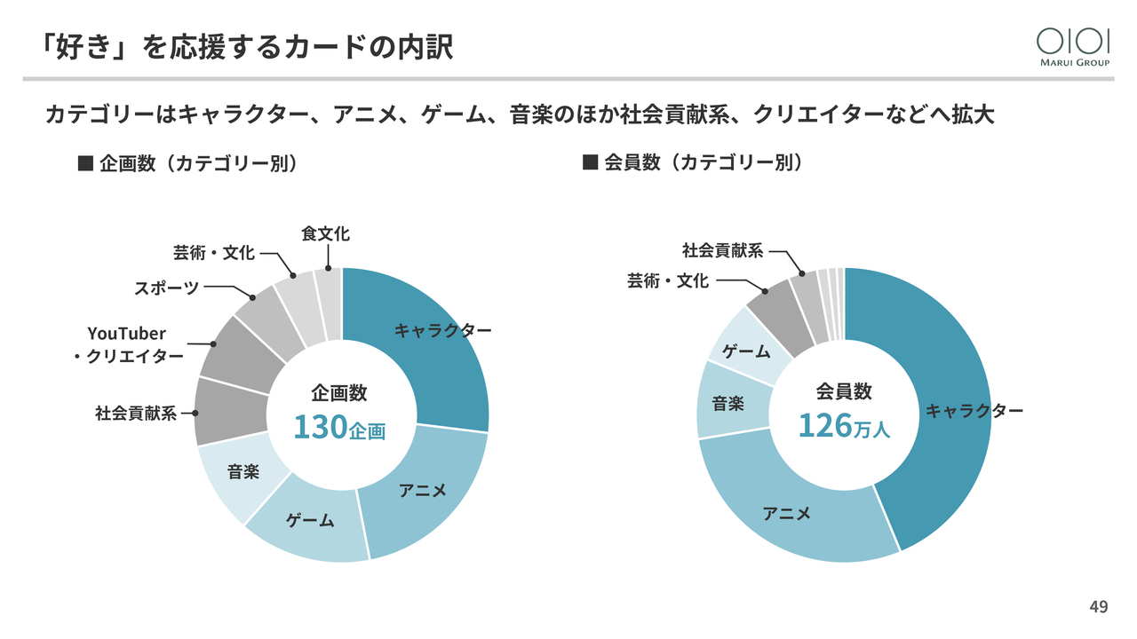 したがって、今後は「ゴールドカード」に加え、「『好き』を応援するカード」とそのグレードアップ版である「『好き』プレミアムカード」、さらにプレミアム会員向け特典の開発を通じたメインカード化を進めます。