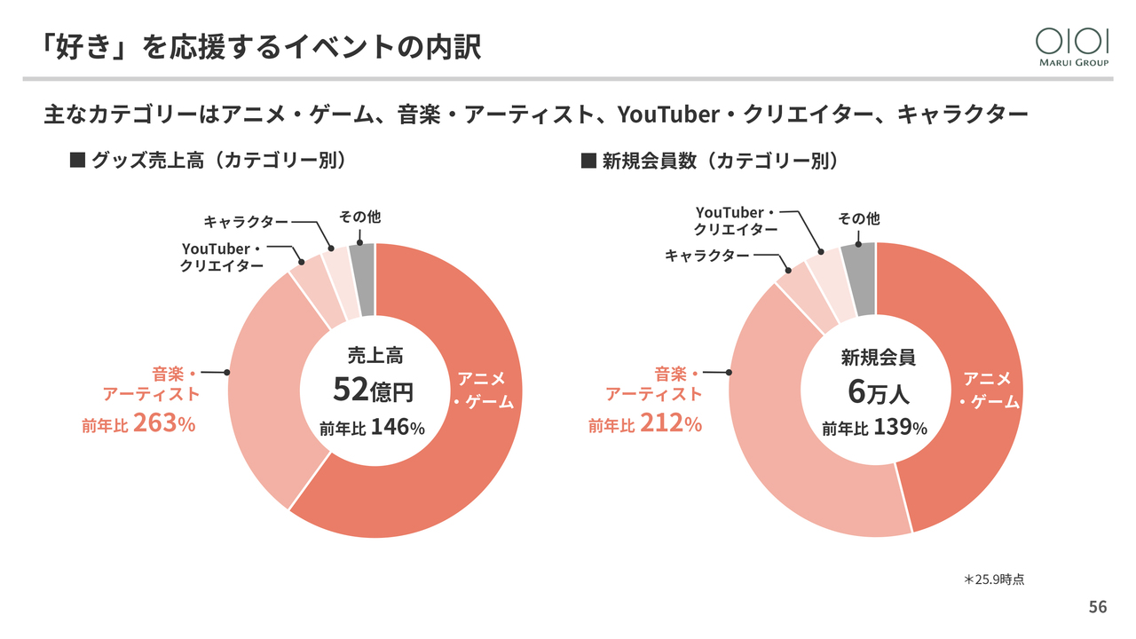 質問者:先ほどのご説明で「好き」を応援するイベントが上振れたとのことでしたが、この内容について、大型のイベントが想定以上に寄与したのか、コンパクト型の物販が寄与しているのか、外部でのイベント開催の寄与とあわせて教えてください。