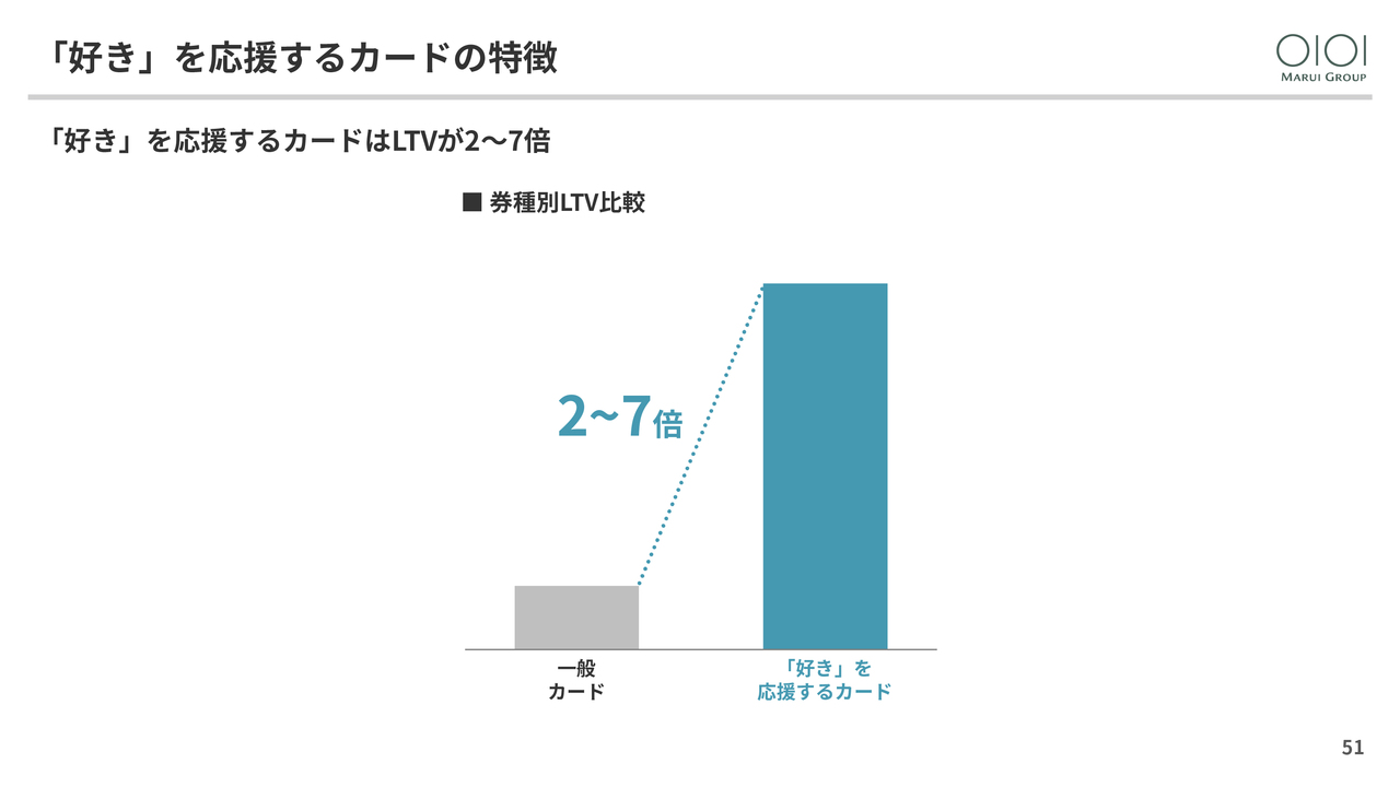 「『好き』を応援するカード」の特徴は、LTVが一般カードの2倍から7倍と高いことです。