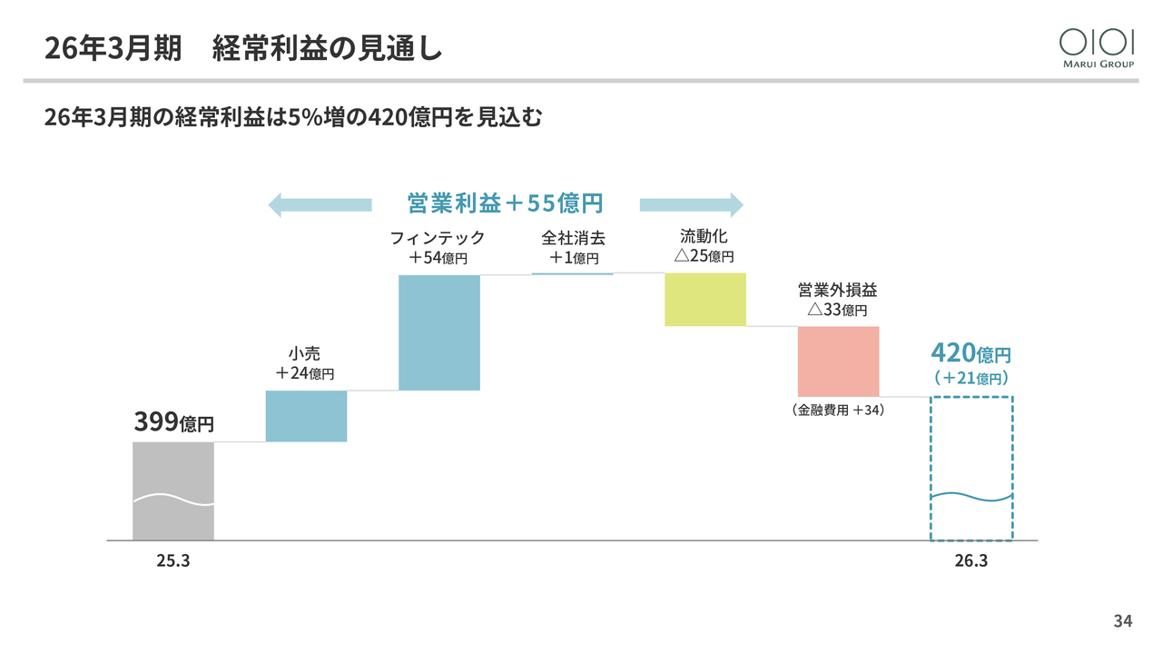 経常利益の見通しです。金利の動向は引き続き注視していきますが、経常利益は前年同期比5パーセント増の420億円と年初計画どおりを見込んでいます。