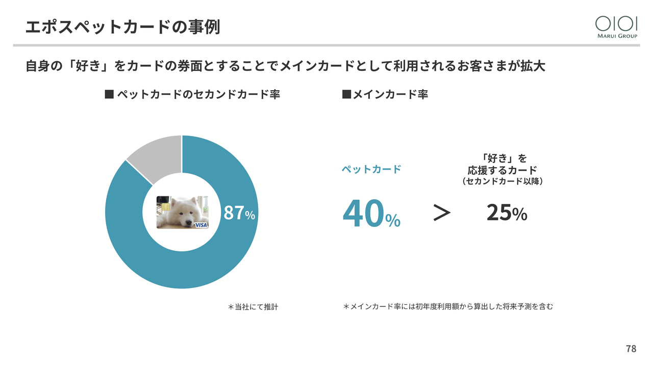 質問者:「『好き』を応援するカード」について、御社のポテンシャルの高さを強く感じています。さまざまな分野において「推し活ではない」という点がよく理解できました。特に、「エポスペットカード」のメインカード率が高いという説明が印象的でした。