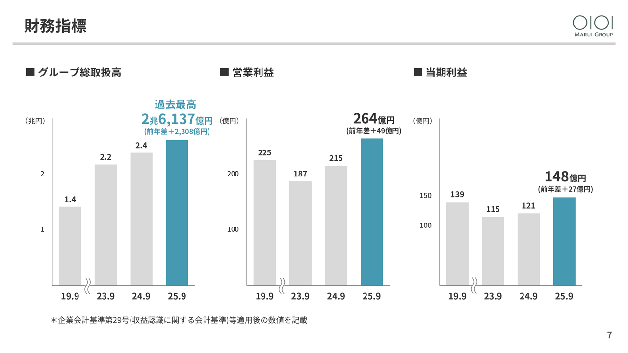 財務指標の推移です。総取扱高は過去最高の2兆6,137億円、営業利益・当期利益ともに大幅増益となり、コロナ禍前の水準を上回りました。