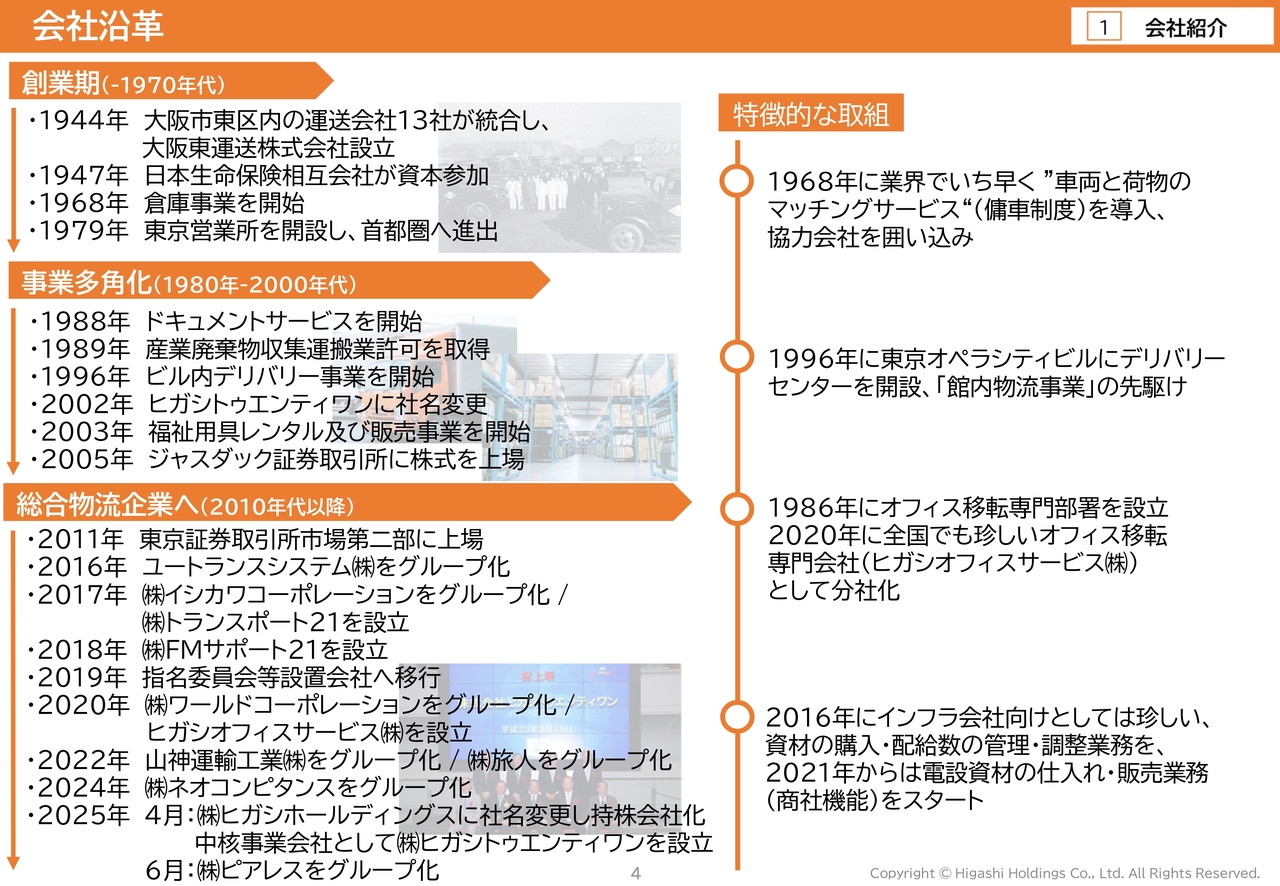 2016年よりM&Aを開始し、2025年には持株会社体制へ移行してグループ経営を推進しています。また、当社は業界に先駆けて特色のある物流サービスを提供してきました。取り組みとして、以下の4点をご紹介します。