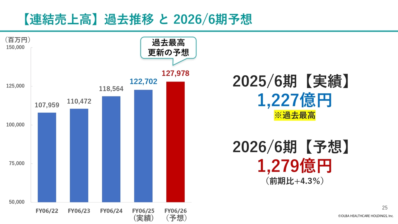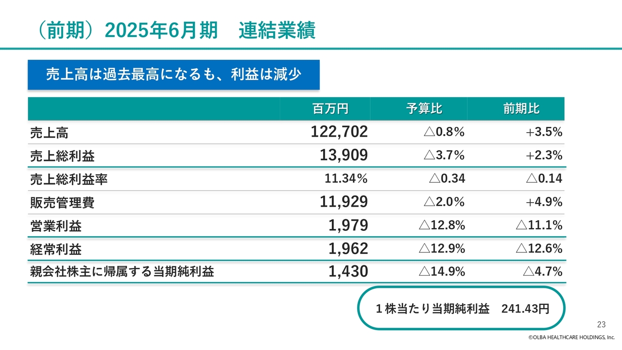 前島:2025年6月期の連結業績についてです。売上高は過去最高となりましたが、利益は減少しました。
