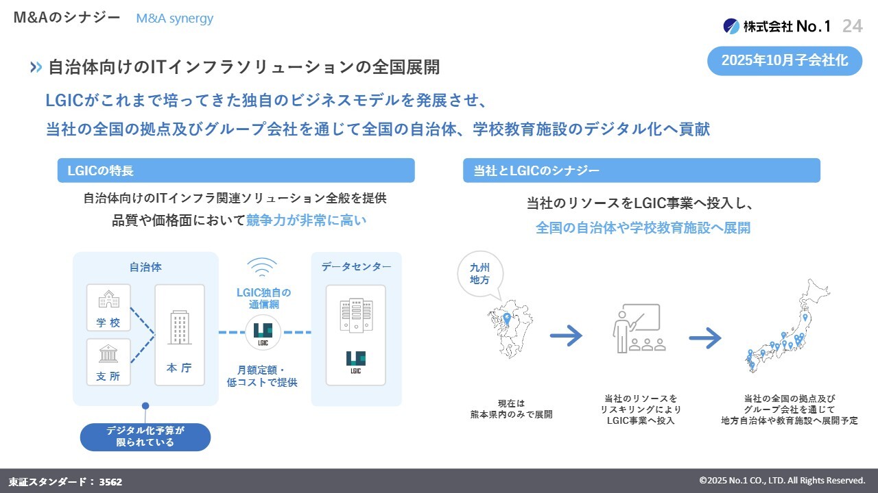 辰巳:3つ目は、新しい市場への進出です。10月に子会社化したLGICは、自治体や学校向けのITインフラ構築に強みを持っています。