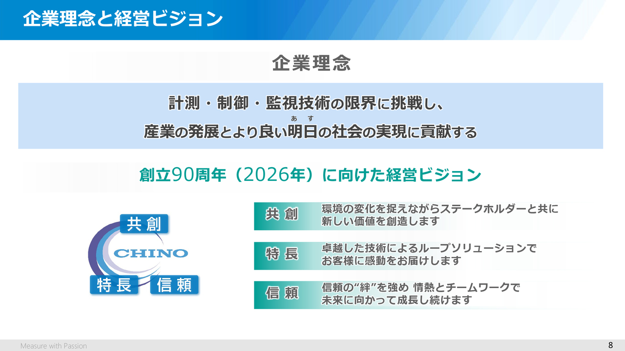 当社の事業ドメインとしては、企業理念で示しているように、計測・制御・監視の分野で、お客さまにおける課題や問題の解決を支援しながら、産業の発展に寄与し、社会に貢献していくことです。