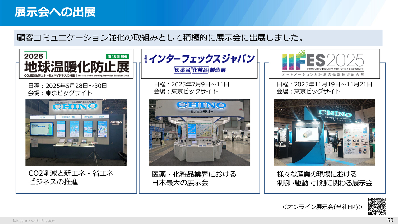 この他にもさまざまな展示会に出展していますが、当社ホームページにも「オンライン展示会」がありますので、ぜひご覧ください。