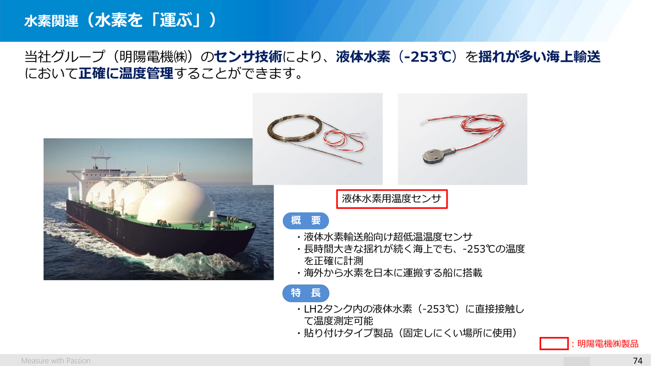 質問:水素社会に向けた事業活動で、「水素を作る・使う」については、ソリューション事例でご説明がありましたが、水素を運ぶ場面でも、御社の製