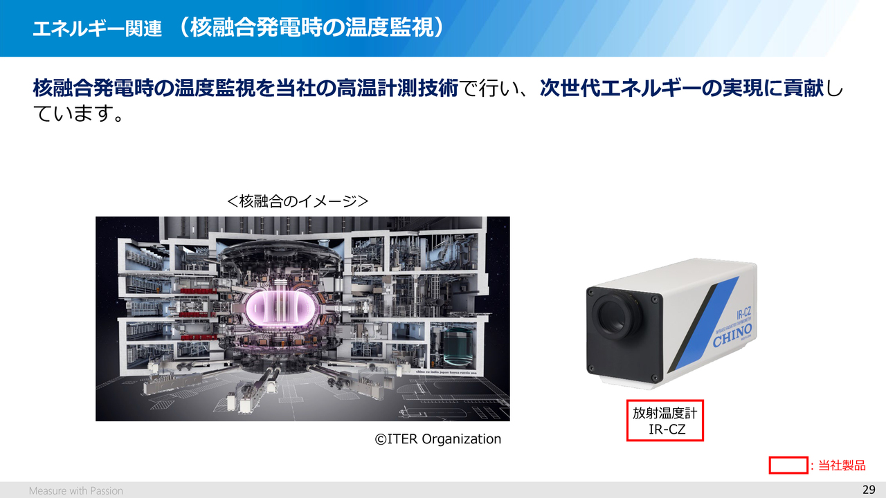 当社の高温計測技術は、この核融合炉の炉壁の温度監視などにも活用されており、こうした分野での技術的な貢献が評価されています。