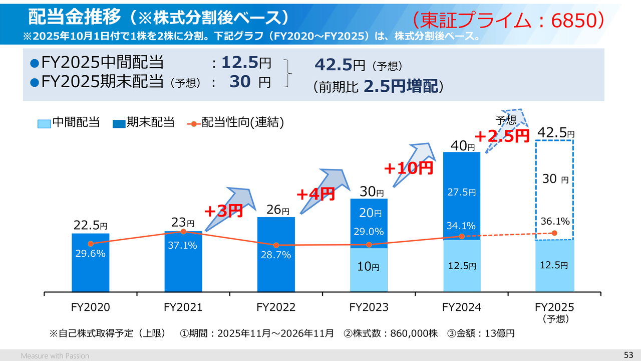 2025年度の配当ですが、中間配当については1株当たりの配当金を12.5円としました。