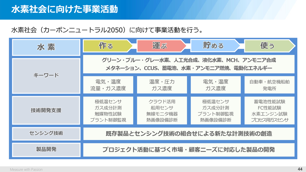 当社はこれまでも、水素のサプライチェーンの高度化を目指す研究機関や企業のイノベーションを支援し、各種システムやセンサ・機器を提供してきました。