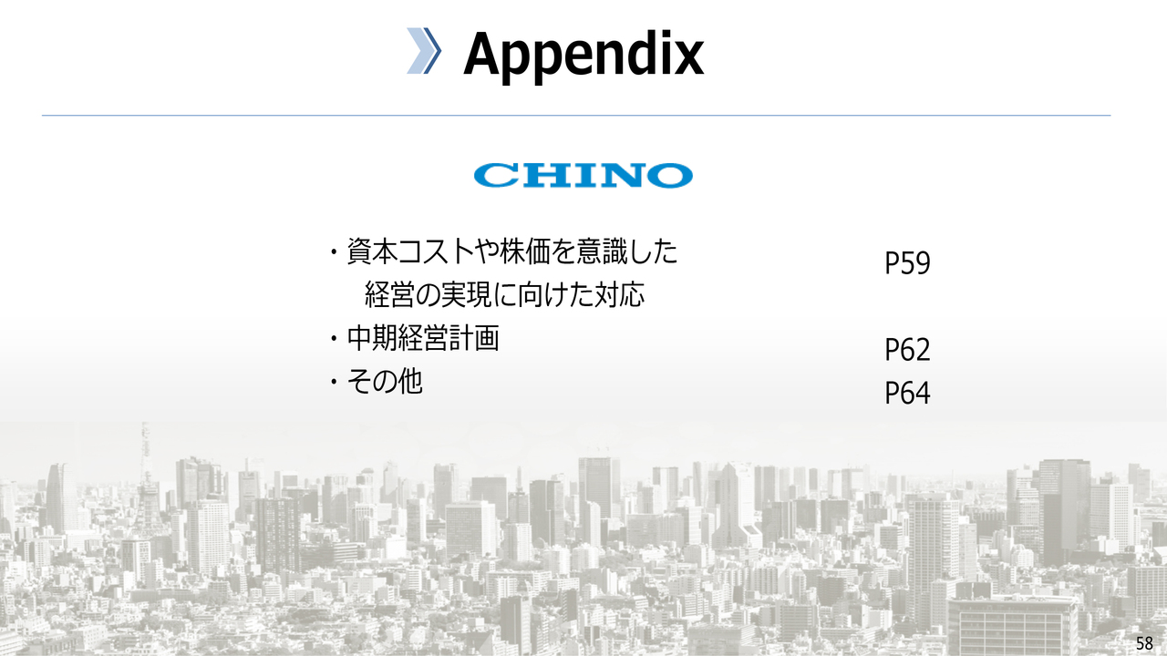 Appendixとして、「資本コストや株価を意識した経営の実現に向けた対応」「中期経営計画」等を記載しています。