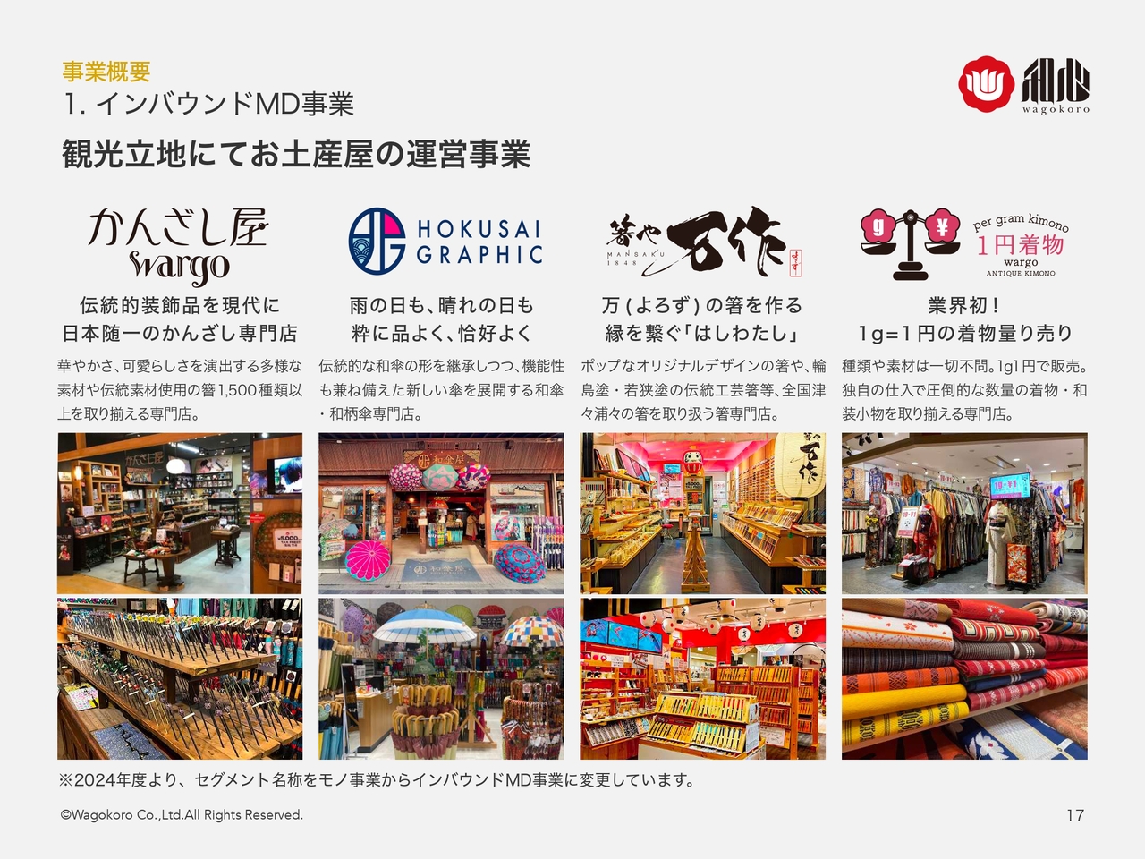 この事業では、日本随一のかんざし専門店である「かんざし屋wargo」をはじめ、さまざまな専門店ブランドを展開しています。